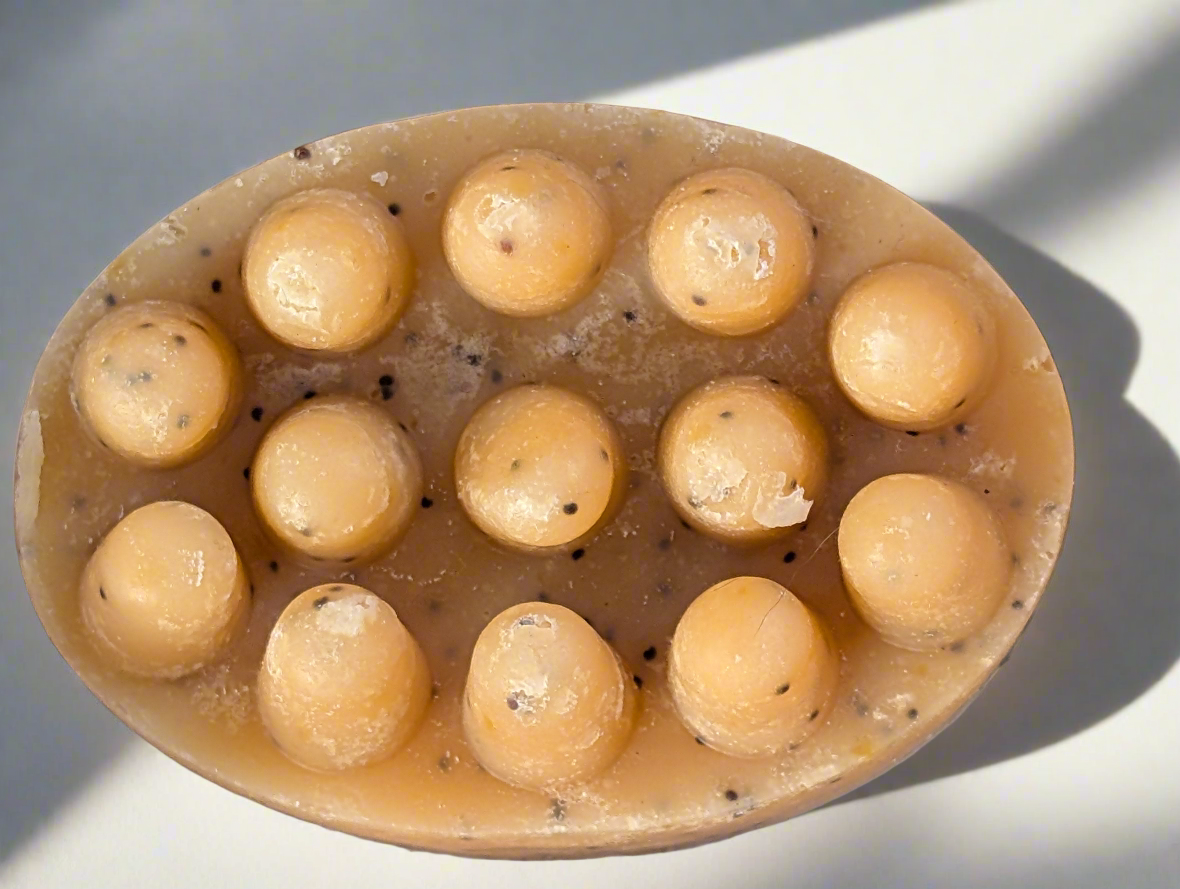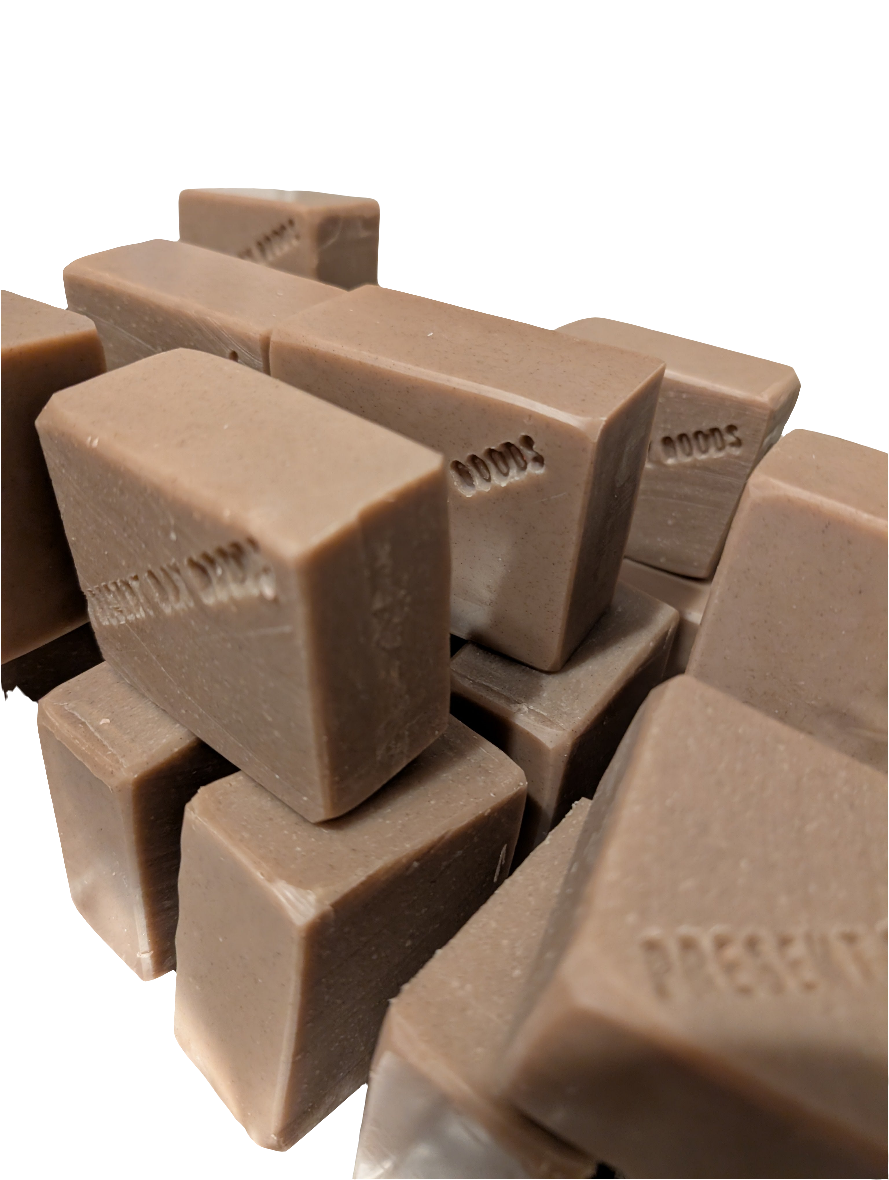 Our soaps are made from simple to exotic ingredients; raw shea butter, pure olive oil, cocoa butter, avocado oil, kaolin clay, honey, turmeric, French red clay, activated charcoal, pumice, essential oils, Italian espresso, and on and on.