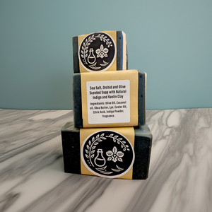 A fresh blend of Olive Leaf, Sea Salt, Citron, and Orchid fragrance oils — clean, calming, and slightly floral.