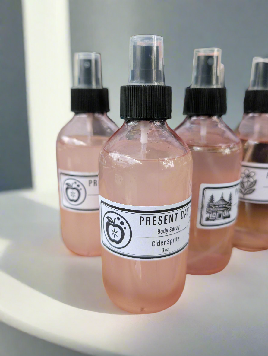 Not so strong to fill up the room, just enough to lift your mood and refresh your senses. The first set of our body sprays in a generous 8 ounce bottle with pump spray contains unisex and feminine aromas of apple champaigne cocktails, Hinoki woods walks, pure essence of Jasmine, and gentle lavender cream.